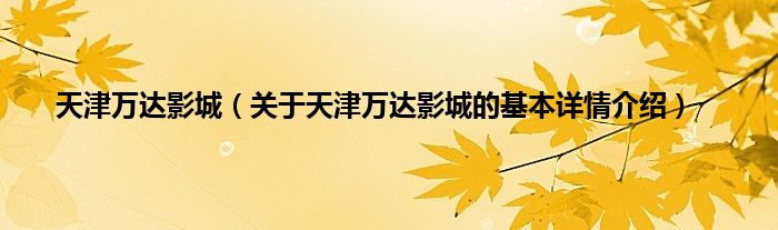 本文关于天津万达影城的基本详情介绍就讲解完毕,希望对大家有所帮助。