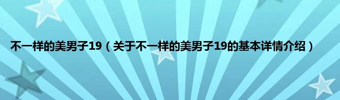 本文关于不一样的美男子19的基本详情介绍就讲解完毕,希望对大家有所帮助。