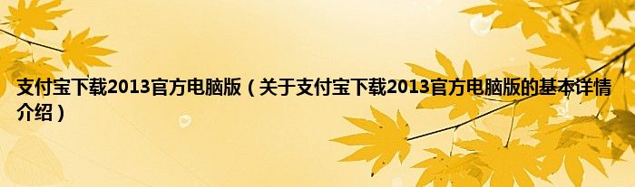 本文关于支付宝下载2013官方电脑版的基本详情介绍就讲解完毕,希望对大家有所帮助。