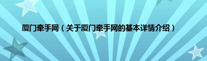 本文关于厦门牵手网的基本详情介绍就讲解完毕,希望对大家有所帮助。