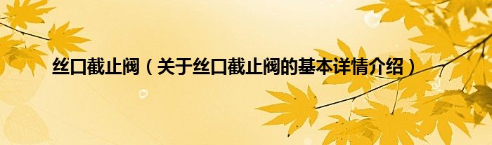 本文关于丝口截止阀的基本详情介绍就讲解完毕,希望对大家有所帮助。