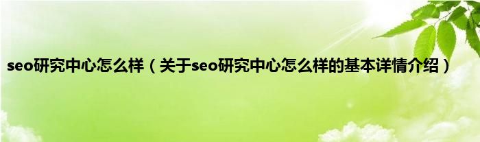 本文关于seo研究中心怎么样的基本详情介绍就讲解完毕,希望对大家有所帮助。