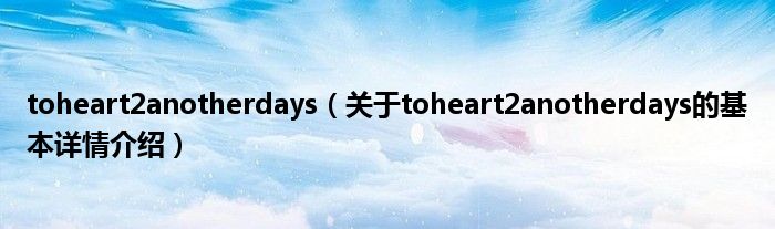 本文关于toheart2anotherdays的基本详情介绍就讲解完毕,希望对大家有所帮助。