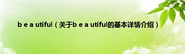 本文关于b e a utiful的基本详情介绍就讲解完毕,希望对大家有所帮助。