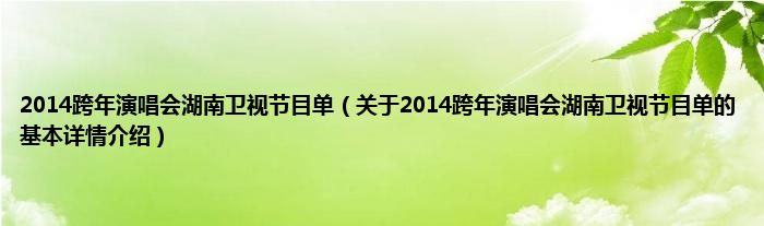 本文关于2014跨年演唱会湖南卫视节目单的基本详情介绍就讲解完毕,希望对大家有所帮助。
