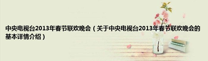 本文关于中央电视台2013年春节联欢晚会的基本详情介绍就讲解完毕,希望对大家有所帮助。
