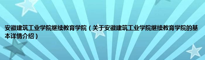 本文关于安徽建筑工业学院继续教育学院的基本详情介绍就讲解完毕,希望对大家有所帮助。