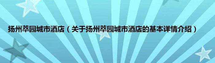 本文关于扬州萃园城市酒店的基本详情介绍就讲解完毕,希望对大家有所帮助。