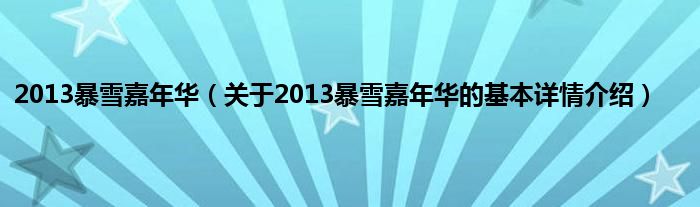 2013暴雪嘉年华(关于2013暴雪嘉年华的基本详情介绍)