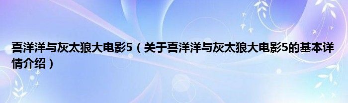 本文关于喜洋洋与灰太狼大电影5的基本详情介绍就讲解完毕,希望对大家有所帮助。