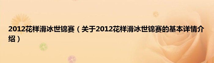 本文关于2012花样滑冰世锦赛的基本详情介绍就讲解完毕,希望对大家有所帮助。