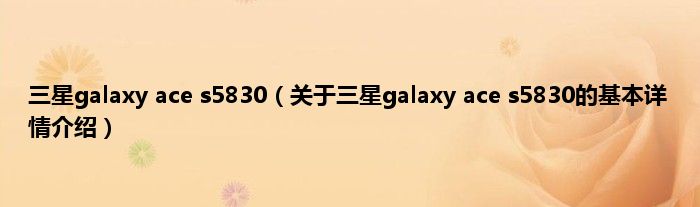 1、三星S5830是韩国三星电子于2011年1月推出的一款面向中端市场的Android智能手机,三星S5830是银河Galaxy盖世四小龙系列中的王牌机型,三星为其命名为“Ace”,意为“杰作”。