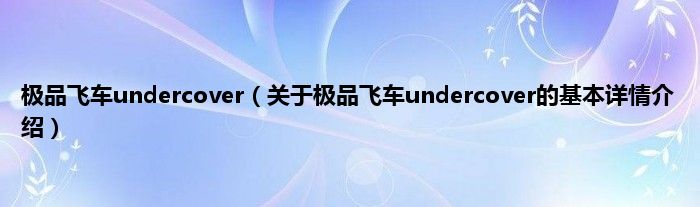 本文关于极品飞车undercover的基本详情介绍就讲解完毕,希望对大家有所帮助。