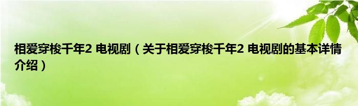 本文关于相爱穿梭千年2 电视剧的基本详情介绍就讲解完毕,希望对大家有所帮助。