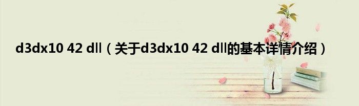 本文关于d3dx10 42 dll的基本详情介绍就讲解完毕,希望对大家有所帮助。