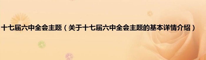 十七届六中全会主题(关于十七届六中全会主题的基本详情介绍)