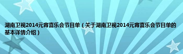 本文关于湖南卫视2014元宵喜乐会节目单的基本详情介绍就讲解完毕,希望对大家有所帮助。