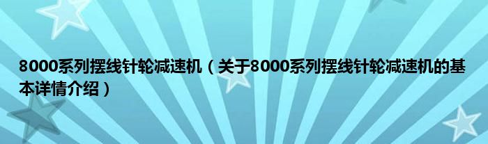 本文关于8000系列摆线针轮减速机的基本详情介绍就讲解完毕,希望对大家有所帮助。