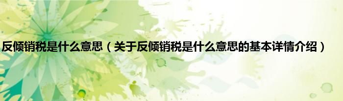 本文关于反倾销税是什么意思的基本详情介绍就讲解完毕,希望对大家有所帮助。