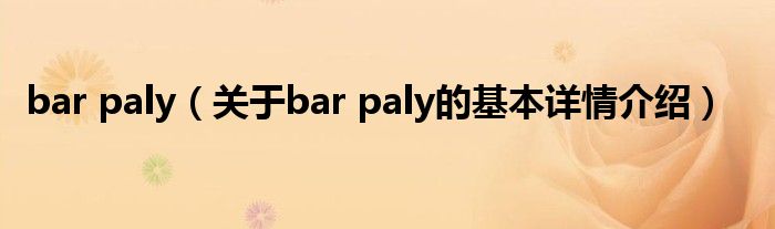 本文关于bar paly的基本详情介绍就讲解完毕,希望对大家有所帮助。