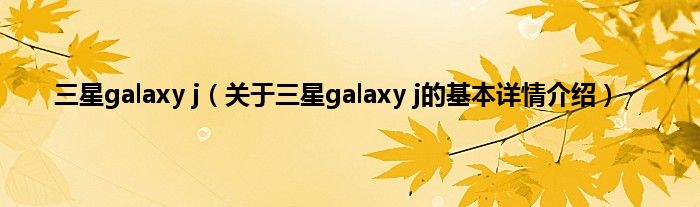 本文关于三星galaxy j的基本详情介绍就讲解完毕,希望对大家有所帮助。