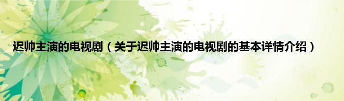 本文关于迟帅主演的电视剧的基本详情介绍就讲解完毕,希望对大家有所帮助。