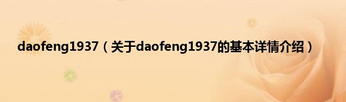 本文关于daofeng1937的基本详情介绍就讲解完毕,希望对大家有所帮助。