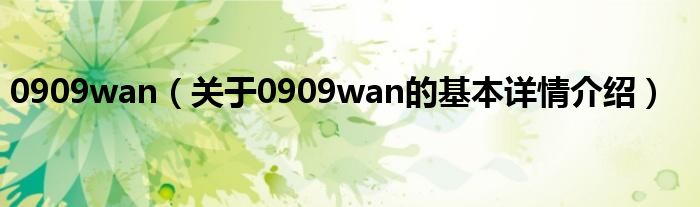 本文关于0909wan的基本详情介绍就讲解完毕,希望对大家有所帮助。