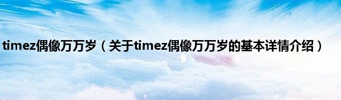 本文关于timez偶像万万岁的基本详情介绍就讲解完毕,希望对大家有所帮助。