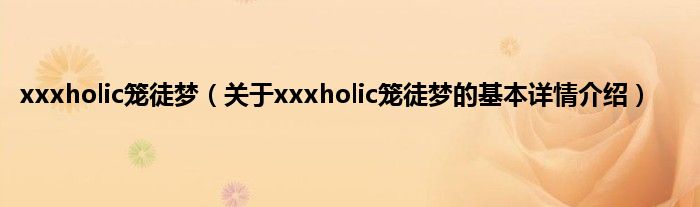 本文关于xxxholic笼徒梦的基本详情介绍就讲解完毕,希望对大家有所帮助。