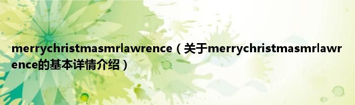 本文关于merrychristmasmrlawrence的基本详情介绍就讲解完毕,希望对大家有所帮助。