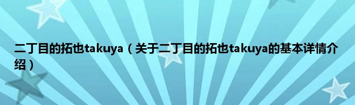 本文关于二丁目的拓也takuya的基本详情介绍就讲解完毕,希望对大家有所帮助。
