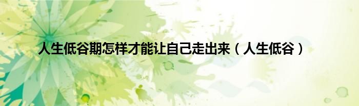 以上就是【人生低谷期怎样才能让自己走出来,人生低谷】相关内容。