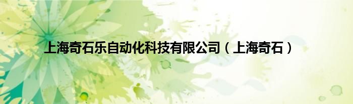大家好,小问来为大家解答以上问题。上海奇石乐自动化科技有限公司,上海奇石这个很多人还不知道,现在让我们一起来看看吧!