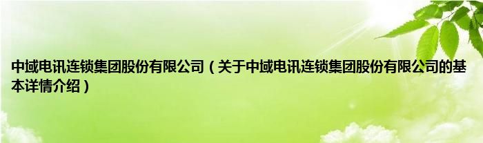本文关于中域电讯连锁集团股份有限公司的基本详情介绍就讲解完毕,希望对大家有所帮助。