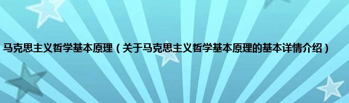 本文关于马克思主义哲学基本原理的基本详情介绍就讲解完毕,希望对大家有所帮助。