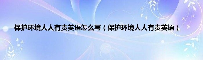 以上就是【保护环境人人有责英语怎么写,保护环境人人有责英语】相关内容。
