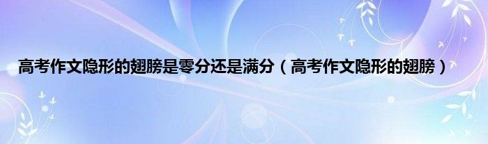 以上就是【高考作文隐形的翅膀是零分还是满分,高考作文隐形的翅膀】相关内容。