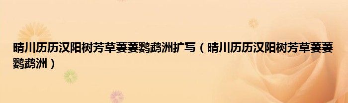 以上就是【晴川历历汉阳树芳草萋萋鹦鹉洲扩写,晴川历历汉阳树芳草萋萋鹦鹉洲】相关内容。