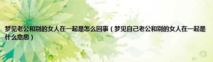 一、梦见自己老公和别的女人在一起的梦境解析: 梦见自己老公和别的女人在一起,预示着生活上很富裕,自己也会身强体壮。