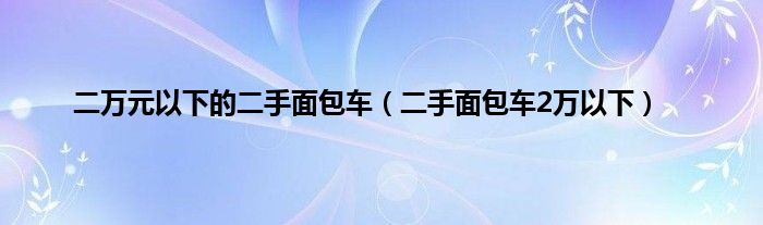 以上就是【二万元以下的二手面包车,二手面包车2万以下】相关内容。