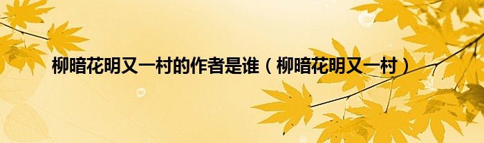 大家好,小问来为大家解答以上问题。柳暗花明又一村的作者是谁,柳暗花明又一村这个很多人还不知道,现在让我们一起来看看吧!