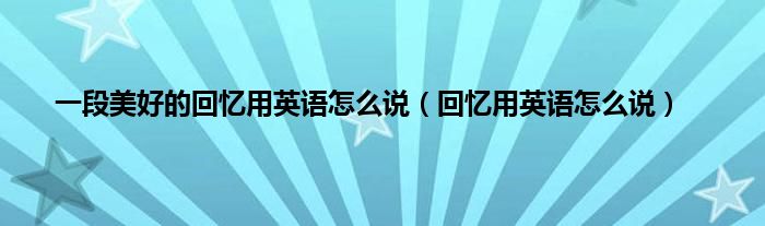 大家好,小问来为大家解答以上问题。一段美好的回忆用英语怎么说,回忆用英语怎么说这个很多人还不知道,现在让我们一起来看看吧!