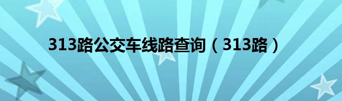 大家好,小问来为大家解答以上问题。313路公交车线路查询,313路这个很多人还不知道,现在让我们一起来看看吧!