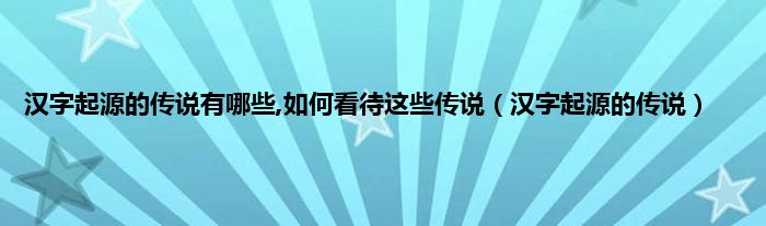 以上就是【汉字起源的传说有哪些,如何看待这些传说,汉字起源的传说】相关内容。