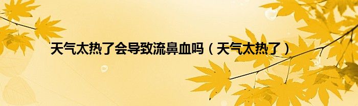 大家好,小问来为大家解答以上问题。天气太热了会导致流鼻血吗,天气太热了这个很多人还不知道,现在让我们一起来看看吧!