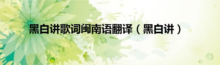 大家好,小问来为大家解答以上问题。黑白讲歌词闽南语翻译,黑白讲这个很多人还不知道,现在让我们一起来看看吧!
