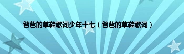 大家好,小问来为大家解答以上问题。爸爸的草鞋歌词少年十七,爸爸的草鞋歌词这个很多人还不知道,现在让我们一起来看看吧!