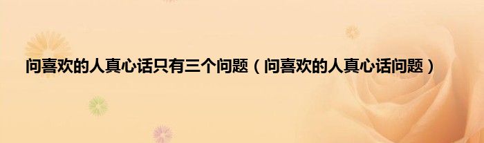 大家好,小问来为大家解答以上问题。问喜欢的人真心话只有三个问题,问喜欢的人真心话问题这个很多人还不知道,现在让我们一起来看看吧!