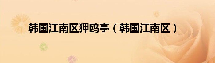 大家好,小问来为大家解答以上问题。韩国江南区狎鸥亭,韩国江南区这个很多人还不知道,现在让我们一起来看看吧!